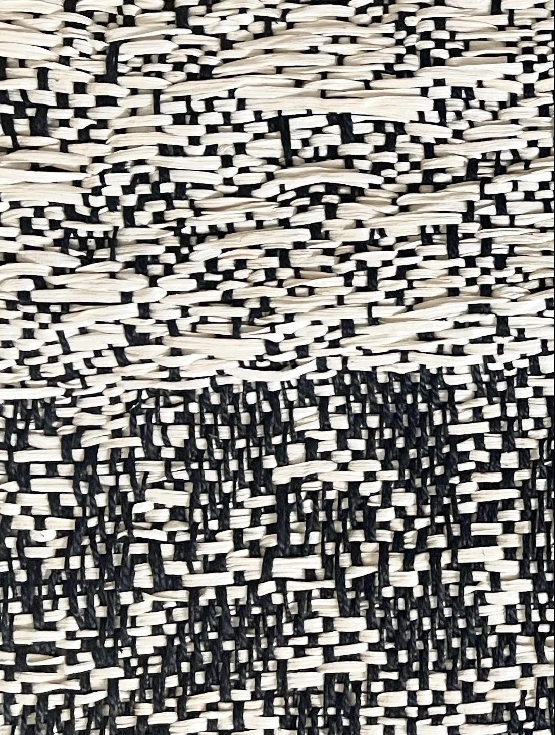 In my current body of work, the wave remains a continuous theme and I became more inspired by this in Norway, particularly the Hardanger fjord which I spent six weeks lounging near and swimming in. The wave is a metaphor for seeing change, progress, movement, and transformation happening around me. I challenge traditional weave structures by distorting them in the virtual realm making them become more flexible, shifty, and glitchy. These weavings reflect a new wave of conditions I am exposed to every day, where structures seem smoothly balanced yet broken and inverted. I’m using technology and weaving to understand how physical structures and digitalized environments can create a specific atmosphere that surrounds us.
