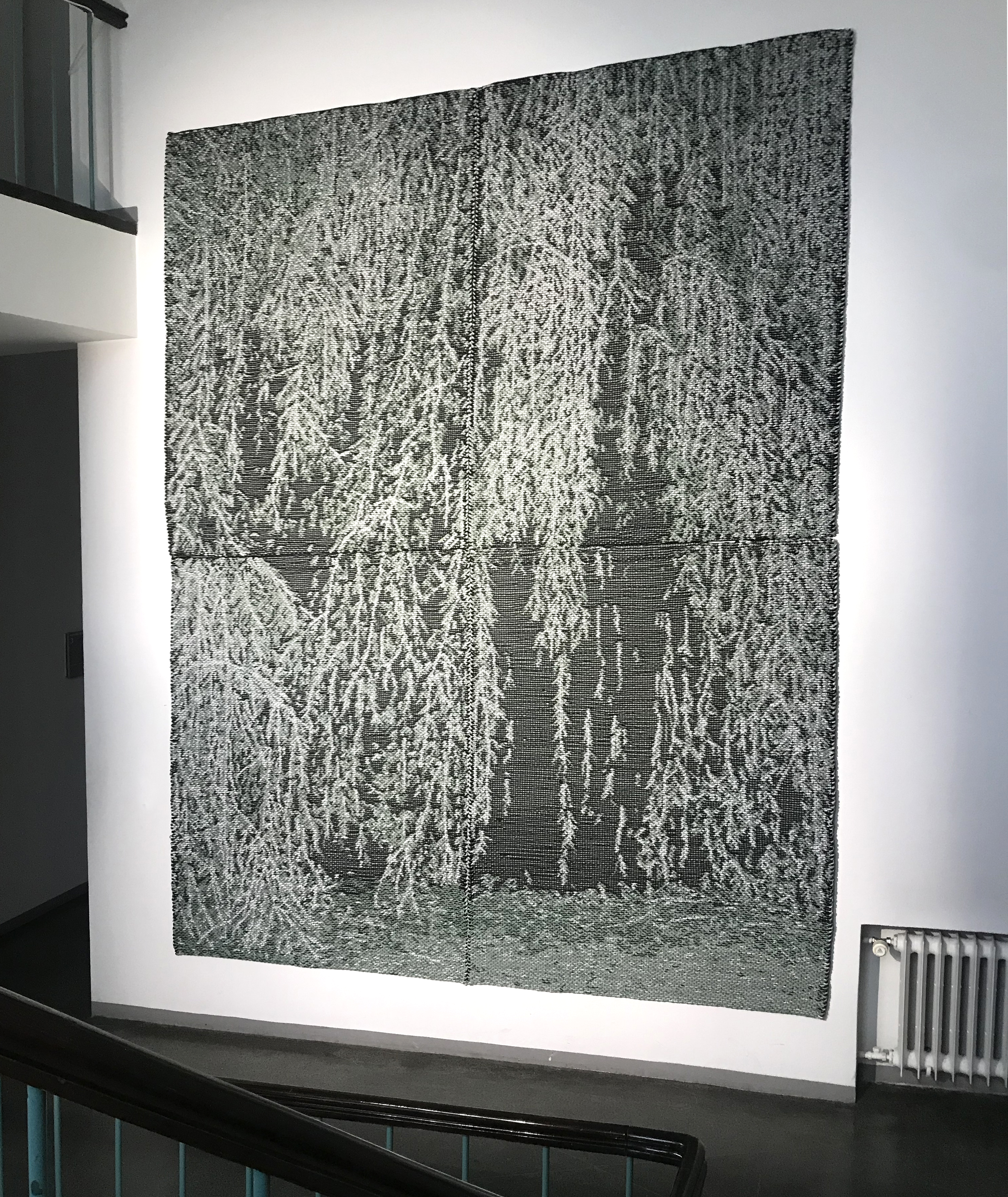 Since a couple of years, I have been looking for an off-gallery space big enough to exhibit large-scaled works and which would fulfill prerequisites like configurable lighting situations. And when I was introduced to a building from the 1940’s, formerly Helsinki University of Technology, I knew this was it! Nowadays, the house hosts small-scale entrepreneurs and artists’ studios. I was particularly impressed by a staircase in between the two parts of the building. The staircase has large windows on one wall, which is characteristic of the functionalism in Finland: detailed, open-stair railings and delicate pillars.