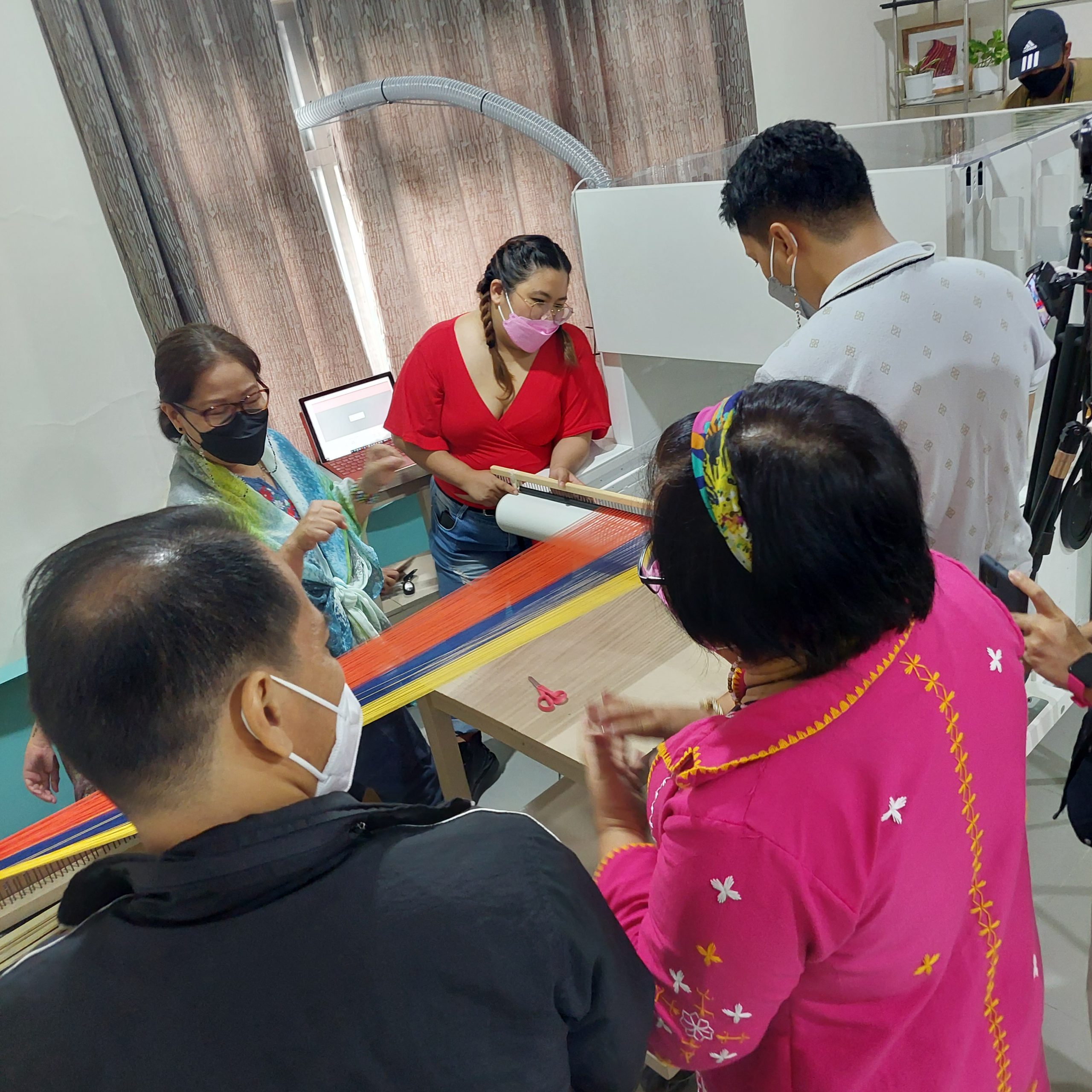 - Meeting Master Weavers: At Baquio, a group of local master weavers were invited to a workshop to get to know the loom. And what a amazing touch they had from the very first second! When you are a weaver and are familiar with materials, yarns and weaving itself, it does not take a long time to learn the loom. These were persons who have rarely have used any graphic software but knowing what they were aiming for, they managed to study the traditional samples and turn them into weave-ready designs.