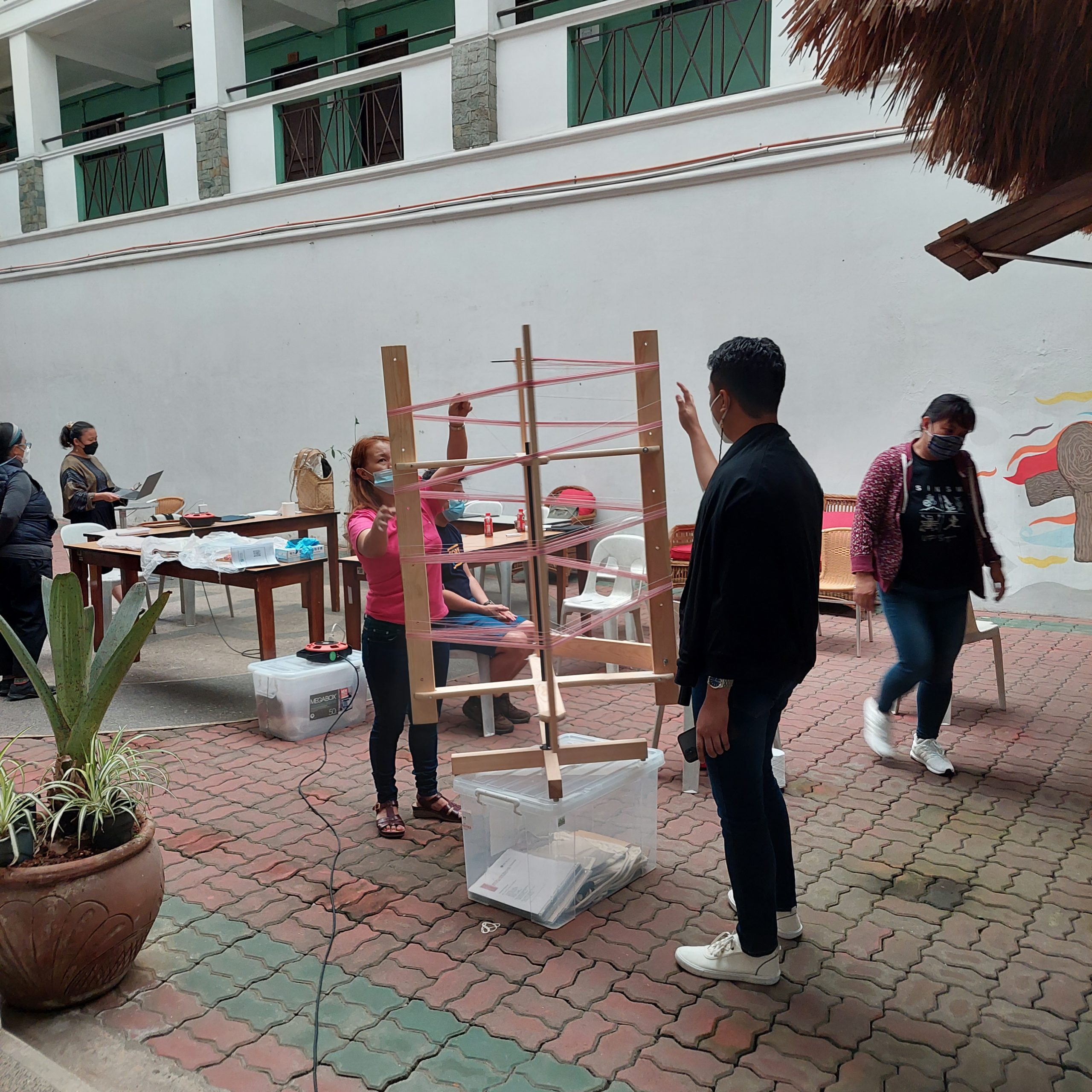 - Workshops: There were two 3-day workshops to assemble the looms and to train the staff on basic usage, starting on how to make the warp and then warp the loom and how to work with the loom. It was a huge effort, with many helping hands. Every stage of assembly was carefully documented for the future use for the staff.