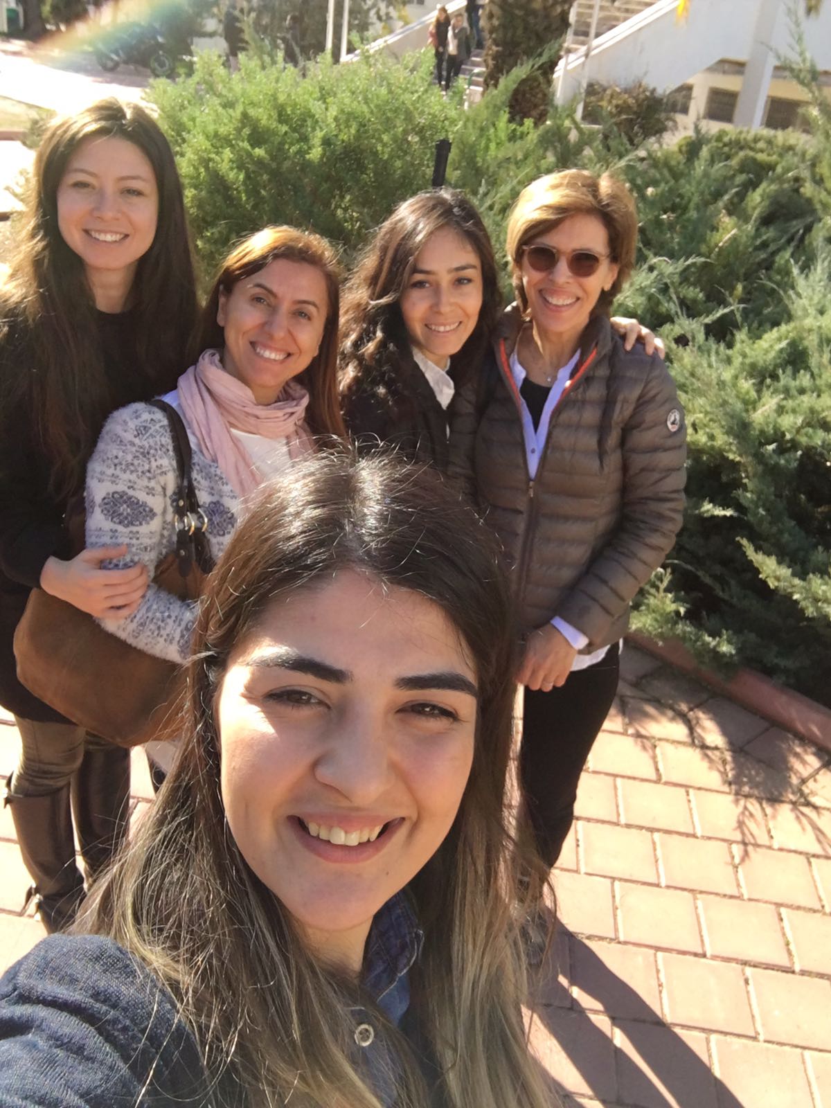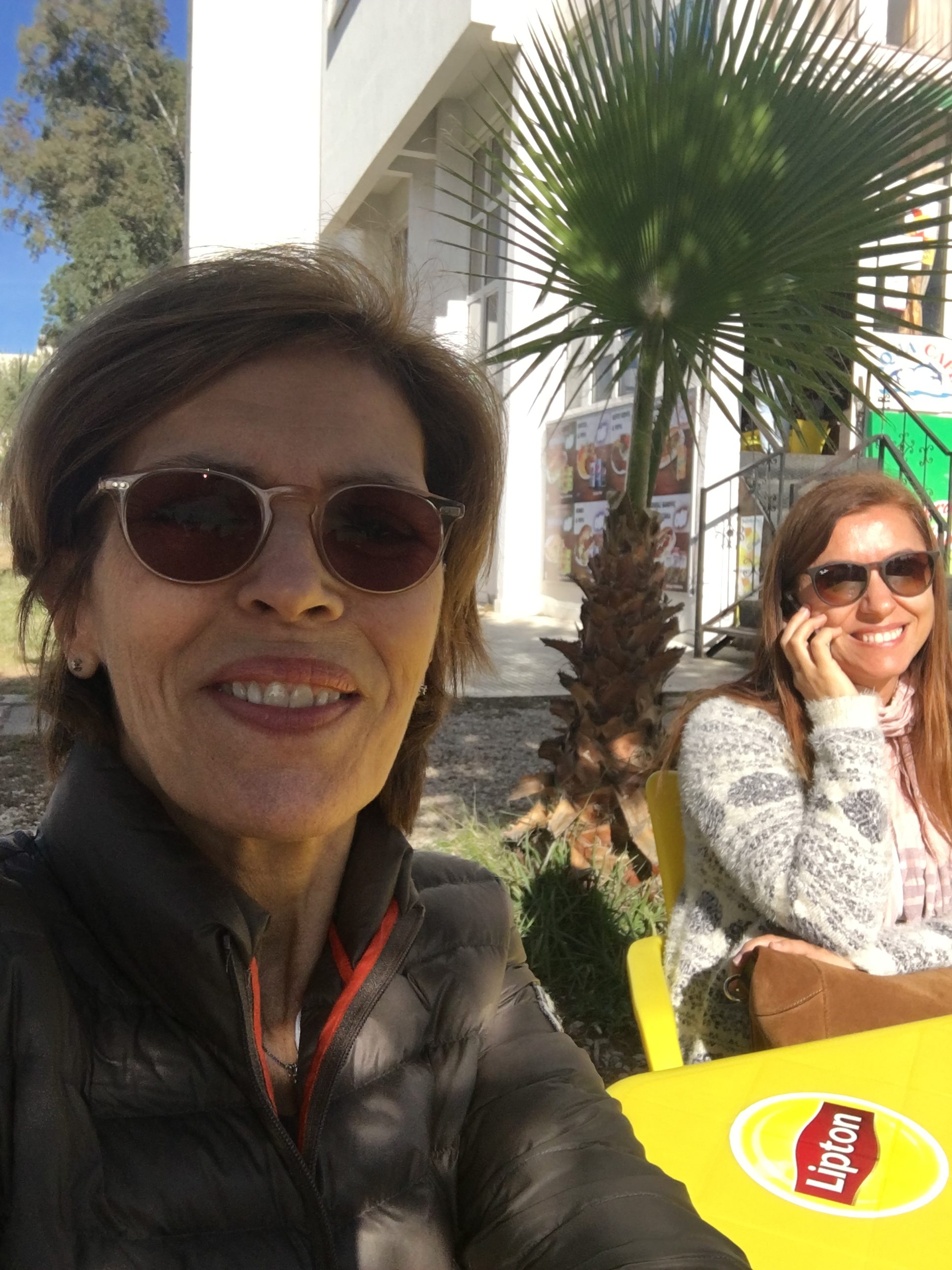 A couple of days we had an outside temperature of around 20 degrees. Of course we had to make sunny selfies on the way to and from lunch!