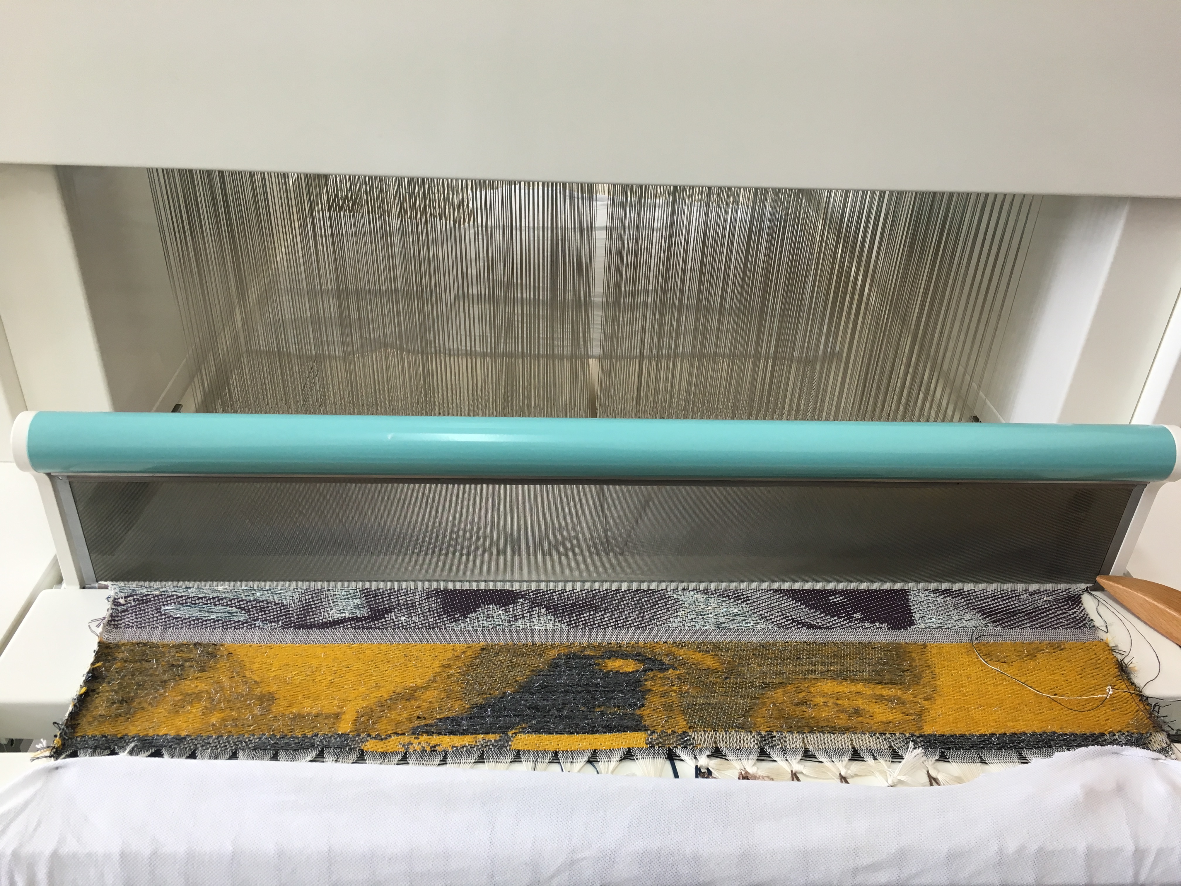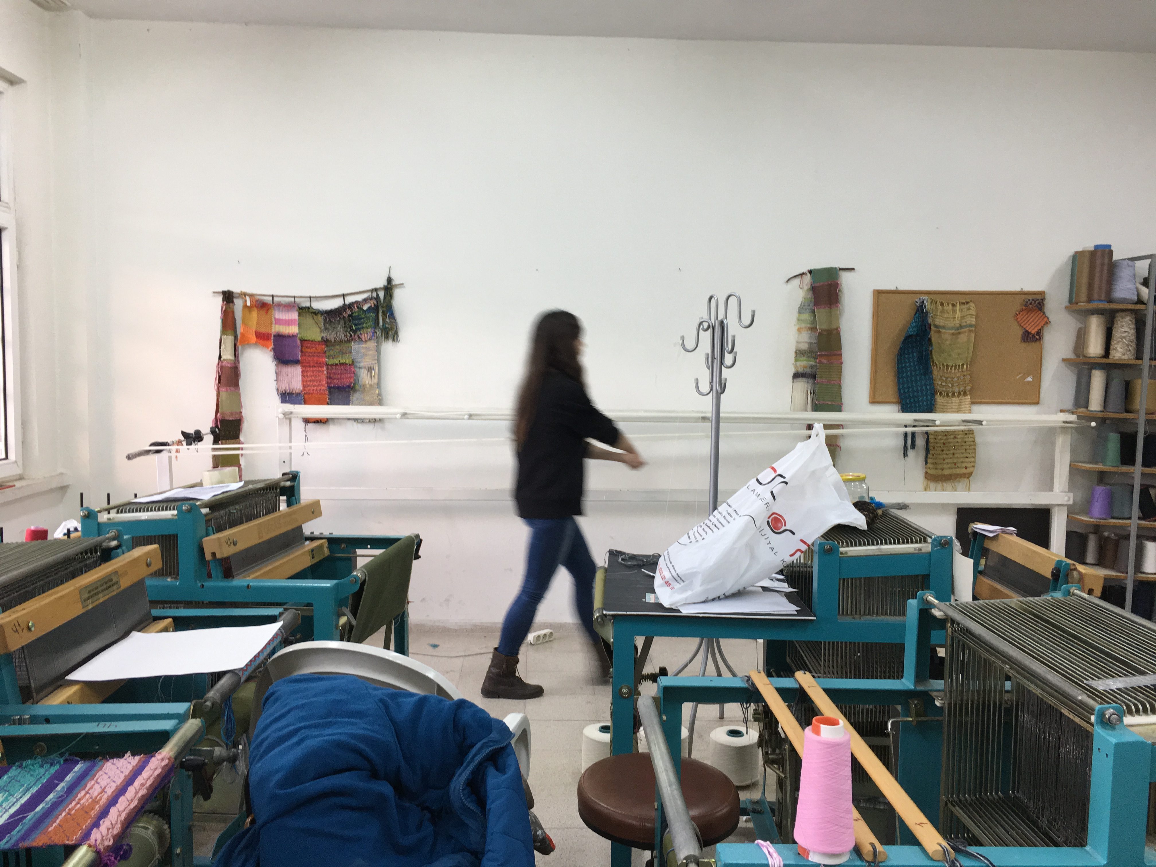 In the same room, they had a number of small 24-shaft dobby looms of Turkish make: They looked smart with the button operation!