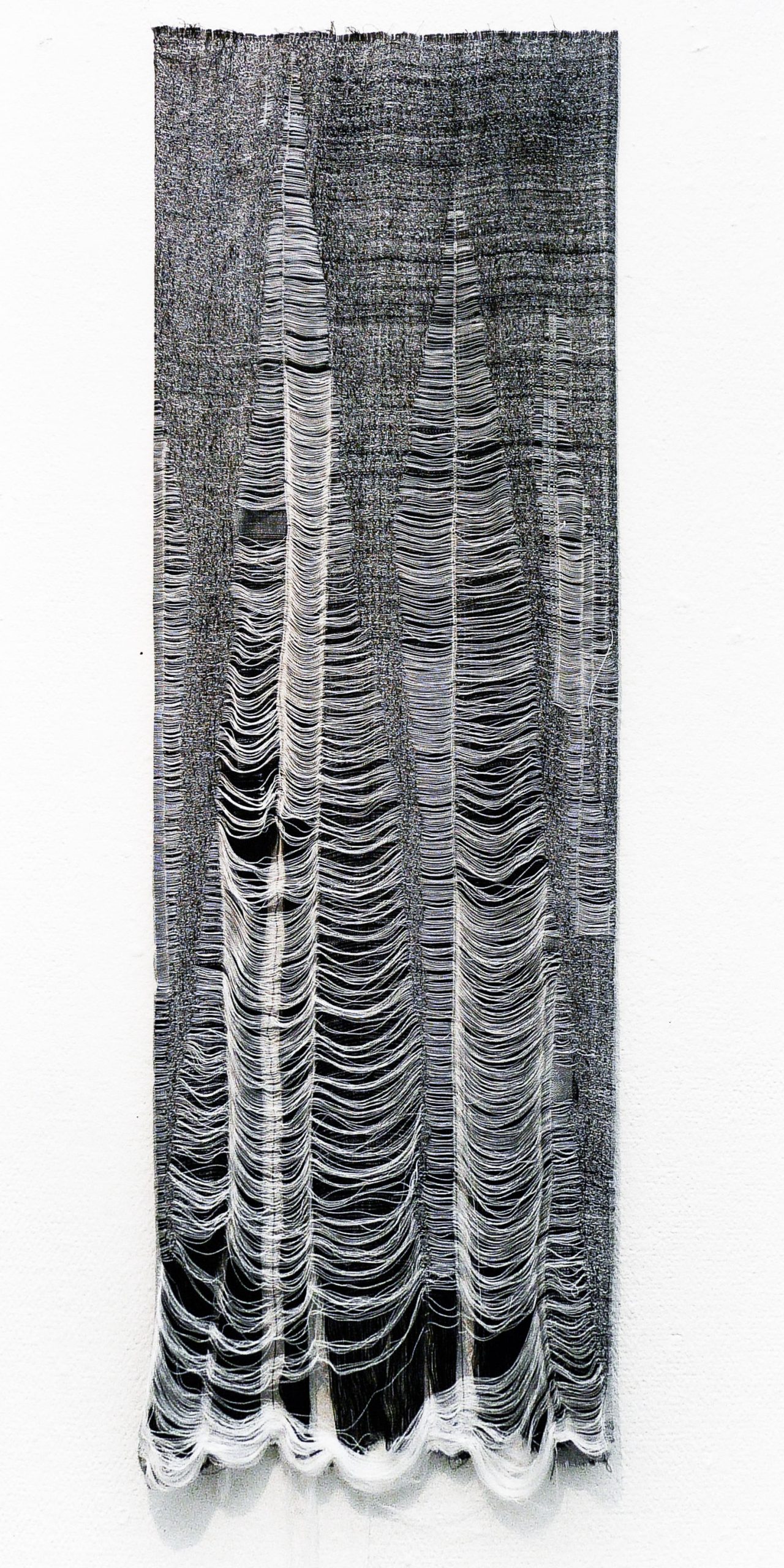 In its digital form, we would call these horizontal lines orderly. As a tapestry, however, this self-organized order causes the fabric to unravel toward the bottom. The tapestry is thus held together by chaos; the social constructs of order and disorder here prove to be no farther apart than a single translation.